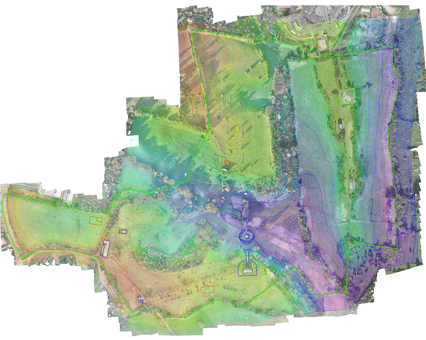 Classificazione della nuvola di punti densa, pulizia automatica e manuale delle entità fuori terra al fine di generare il modello digitale del terreno (DTM) e relative curve di livello a tinte altimetriche con equidistanza 50 cm con successiva importazione in ambiente CAD e redazione cartografia numerica 3D in scala 1: 100.