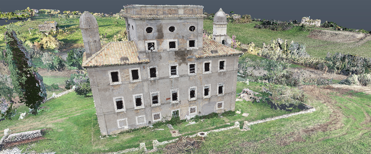 Elaborazione delle prese aeree acquisite con i S.A.P.R., inserimento dei punti di controllo a terra rilevati (GCP) al fine di validare metricamente l’area rilevata ed i manufatti rilevati con successiva generazione dei modelli 3D a nuvola di punti densa ottenuto dal rilievo aerofotogrammetrico.